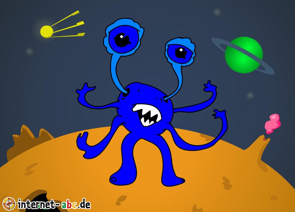 Mit der Rakete fliegen die 4 Internet-ABC-Tiere in den Weltraum. Was sie dort sehen und erleben, könnt ihr in diesem Baukasten malen und erzählen.