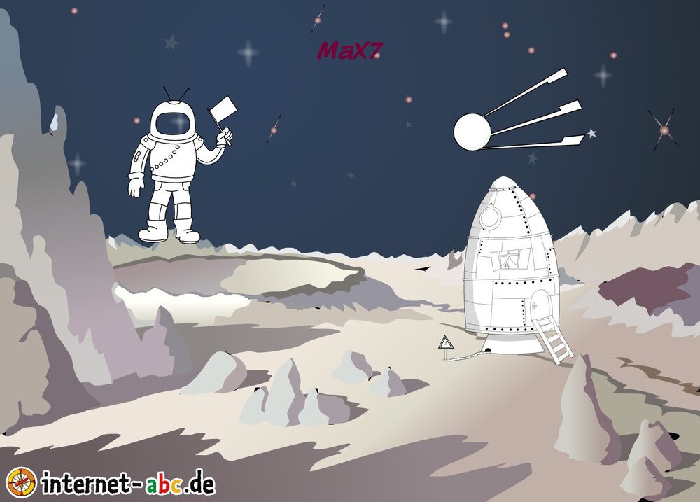 Mit der Rakete fliegen die 4 Internet-ABC-Tiere in den Weltraum. Was sie dort sehen und erleben, könnt ihr in diesem Baukasten malen und erzählen.