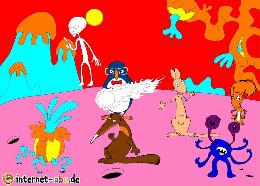 Mit der Rakete fliegen die 4 Internet-ABC-Tiere in den Weltraum. Was sie dort sehen und erleben, könnt ihr in diesem Baukasten malen und erzählen.