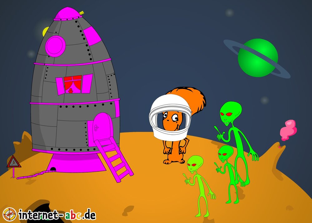 Mit der Rakete fliegen die 4 Internet-ABC-Tiere in den Weltraum. Was sie dort sehen und erleben, könnt ihr in diesem Baukasten malen und erzählen.