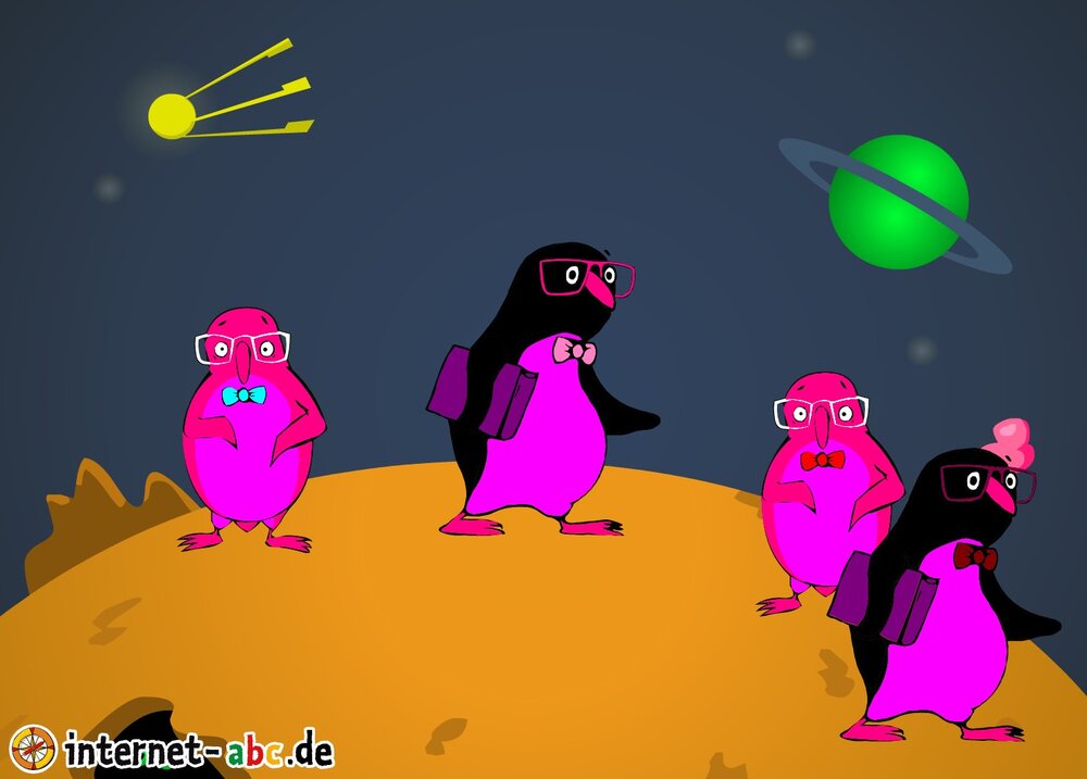 Mit der Rakete fliegen die 4 Internet-ABC-Tiere in den Weltraum. Was sie dort sehen und erleben, könnt ihr in diesem Baukasten malen und erzählen.