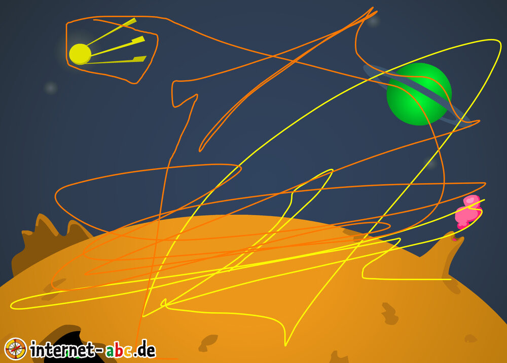 Mit der Rakete fliegen die 4 Internet-ABC-Tiere in den Weltraum. Was sie dort sehen und erleben, könnt ihr in diesem Baukasten malen und erzählen.