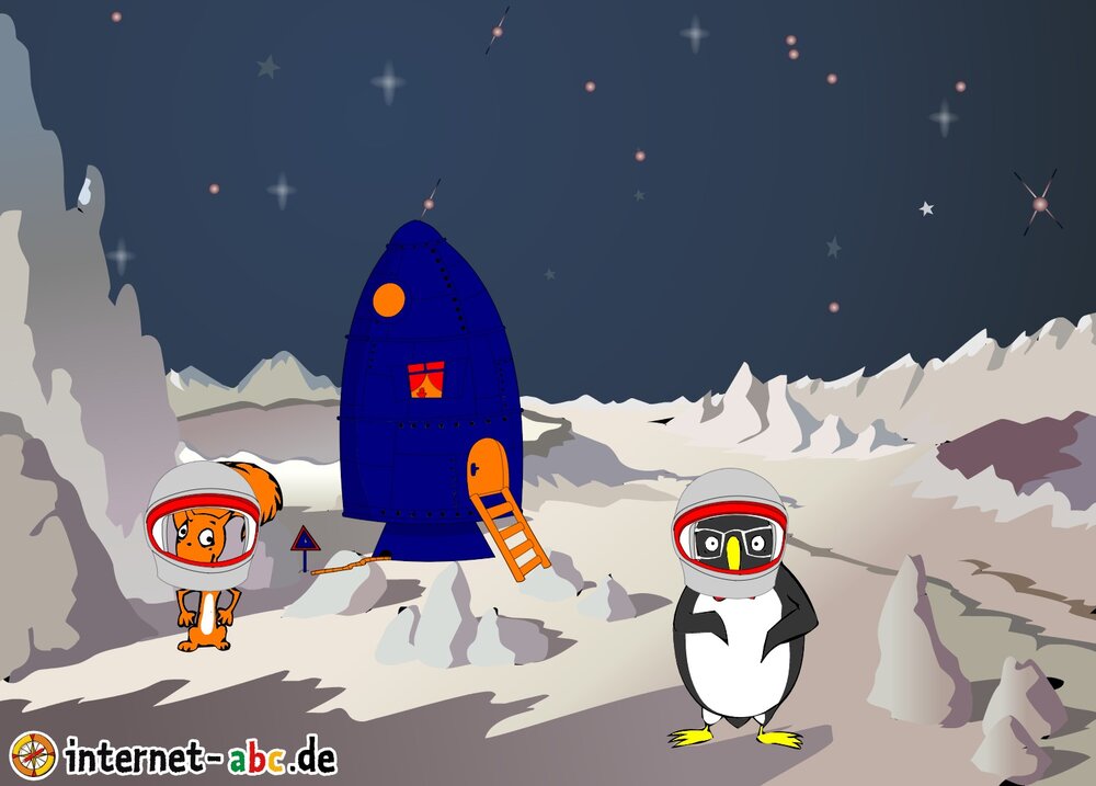 Mit der Rakete fliegen die 4 Internet-ABC-Tiere in den Weltraum. Was sie dort sehen und erleben, könnt ihr in diesem Baukasten malen und erzählen.