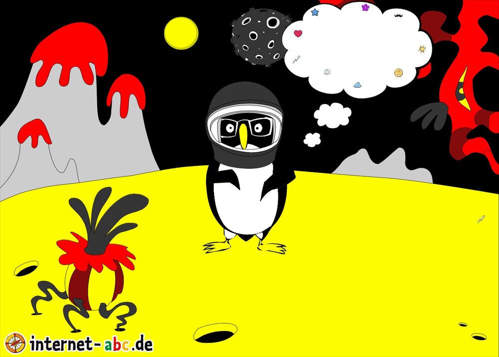 Mit der Rakete fliegen die 4 Internet-ABC-Tiere in den Weltraum. Was sie dort sehen und erleben, könnt ihr in diesem Baukasten malen und erzählen.