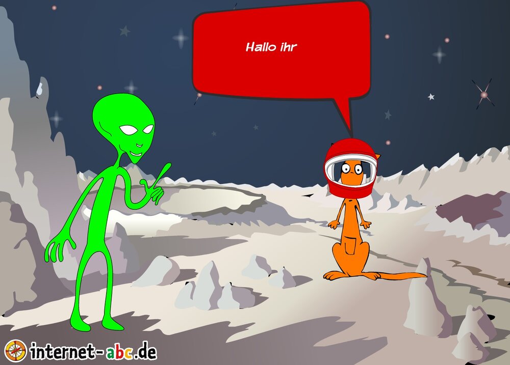 Mit der Rakete fliegen die 4 Internet-ABC-Tiere in den Weltraum. Was sie dort sehen und erleben, könnt ihr in diesem Baukasten malen und erzählen.