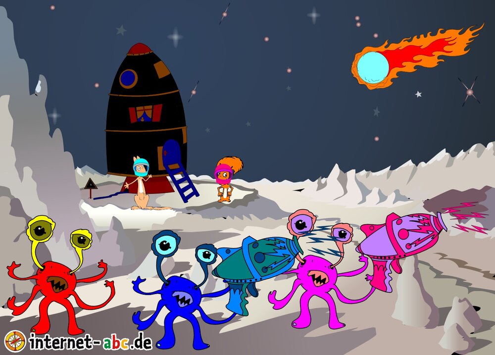 Hier kannst du sehen, welche Bilder es schon zum Thema Weltraum gibt. Klicke auf ein Bild oder eine Überschrift, um zur Seite zu gelangen. Dort findest du auch eine passende Geschichte zum Bild.