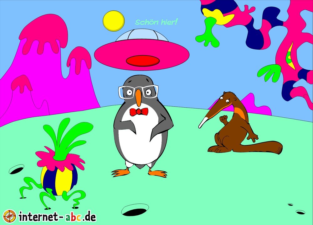 Mit der Rakete fliegen die 4 Internet-ABC-Tiere in den Weltraum. Was sie dort sehen und erleben, könnt ihr in diesem Baukasten malen und erzählen.