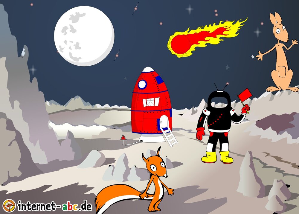 Mit der Rakete fliegen die 4 Internet-ABC-Tiere in den Weltraum. Was sie dort sehen und erleben, könnt ihr in diesem Baukasten malen und erzählen.