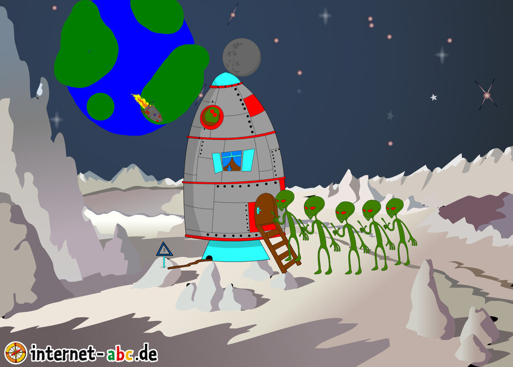 Mit der Rakete fliegen die 4 Internet-ABC-Tiere in den Weltraum. Was sie dort sehen und erleben, könnt ihr in diesem Baukasten malen und erzählen.