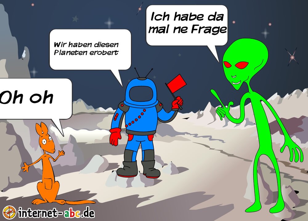 Mit der Rakete fliegen die 4 Internet-ABC-Tiere in den Weltraum. Was sie dort sehen und erleben, könnt ihr in diesem Baukasten malen und erzählen.