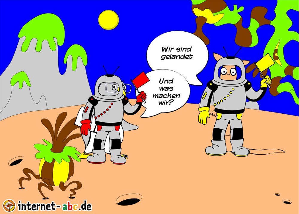 Mit der Rakete fliegen die 4 Internet-ABC-Tiere in den Weltraum. Was sie dort sehen und erleben, könnt ihr in diesem Baukasten malen und erzählen.