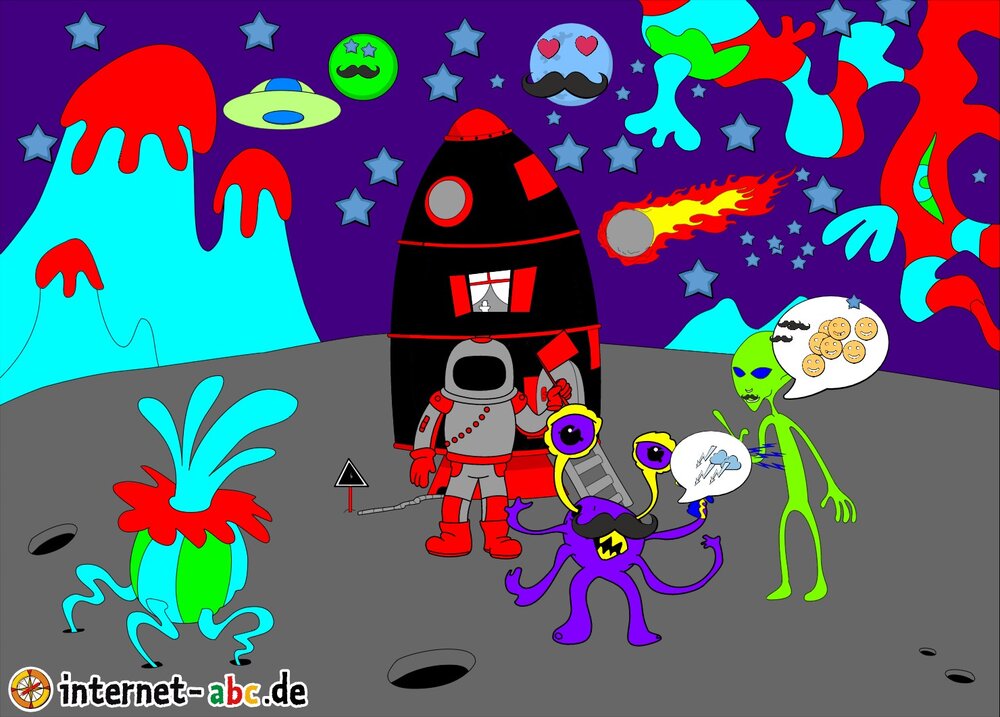 Hier kannst du sehen, welche Bilder es schon zum Thema Weltraum gibt. Klicke auf ein Bild oder eine Überschrift, um zur Seite zu gelangen. Dort findest du auch eine passende Geschichte zum Bild.