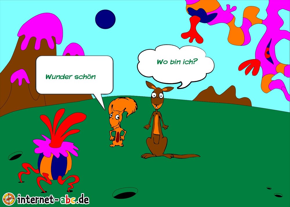 Mit der Rakete fliegen die 4 Internet-ABC-Tiere in den Weltraum. Was sie dort sehen und erleben, könnt ihr in diesem Baukasten malen und erzählen.