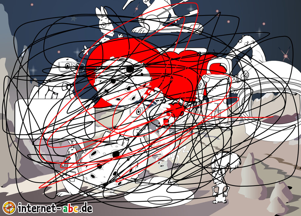 Mit der Rakete fliegen die 4 Internet-ABC-Tiere in den Weltraum. Was sie dort sehen und erleben, könnt ihr in diesem Baukasten malen und erzählen.