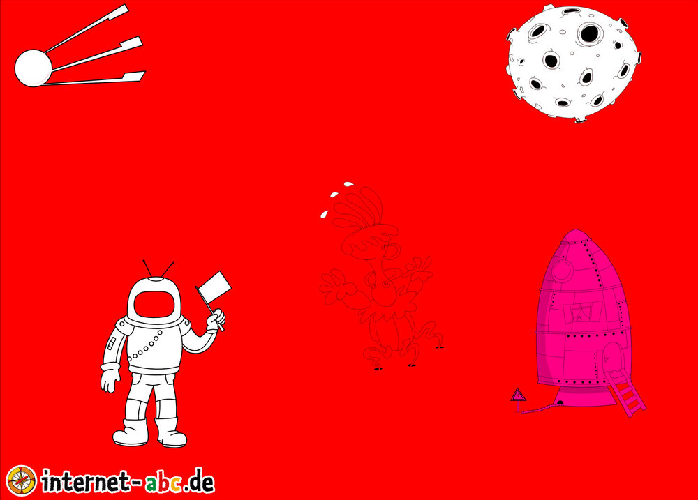 Mit der Rakete fliegen die 4 Internet-ABC-Tiere in den Weltraum. Was sie dort sehen und erleben, könnt ihr in diesem Baukasten malen und erzählen.
