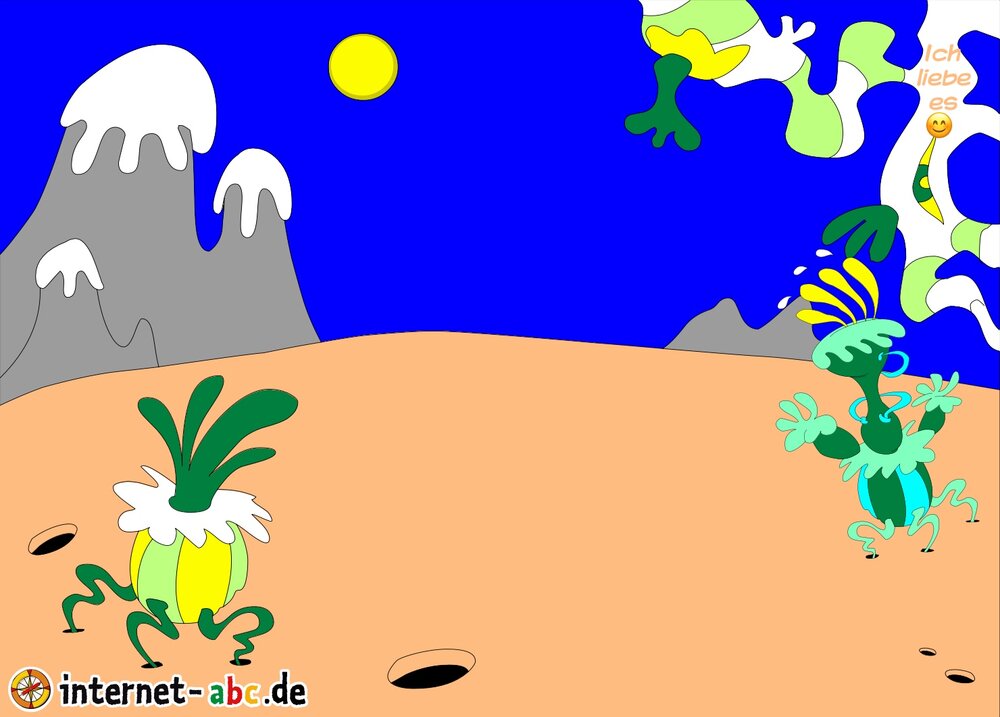 Mit der Rakete fliegen die 4 Internet-ABC-Tiere in den Weltraum. Was sie dort sehen und erleben, könnt ihr in diesem Baukasten malen und erzählen.
