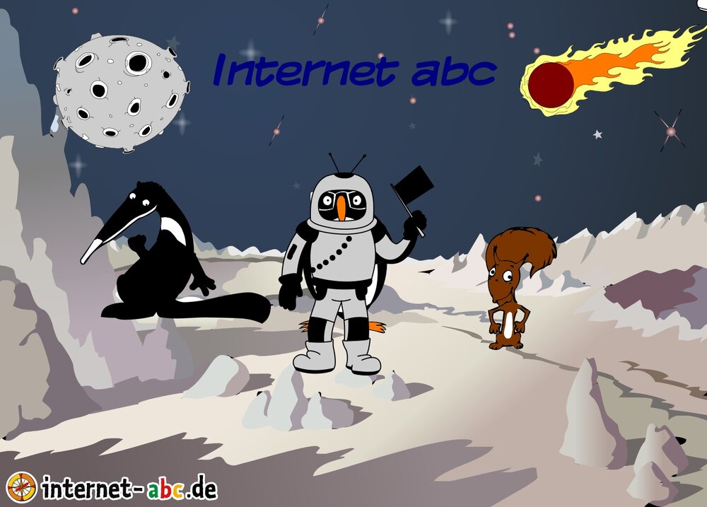 Mit der Rakete fliegen die 4 Internet-ABC-Tiere in den Weltraum. Was sie dort sehen und erleben, könnt ihr in diesem Baukasten malen und erzählen.