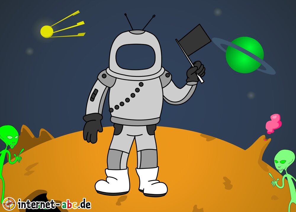 Mit der Rakete fliegen die 4 Internet-ABC-Tiere in den Weltraum. Was sie dort sehen und erleben, könnt ihr in diesem Baukasten malen und erzählen.