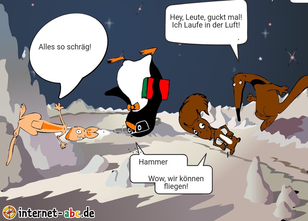 Das sind unsere vier Helden im Weltraum. Man, da wird man ja fast schon neidisch!