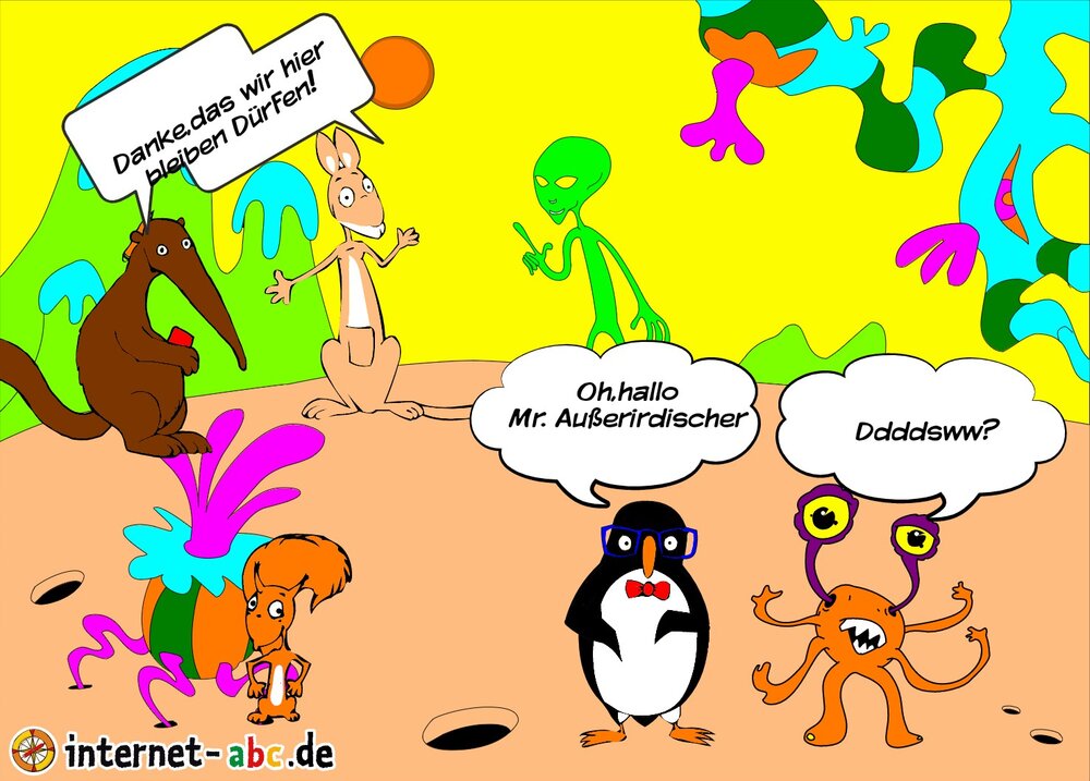 Die Außerirdischen sagen,sie dürfen bleiben,bis die anderen Außerirdischen ihre Rakete repariert haben.