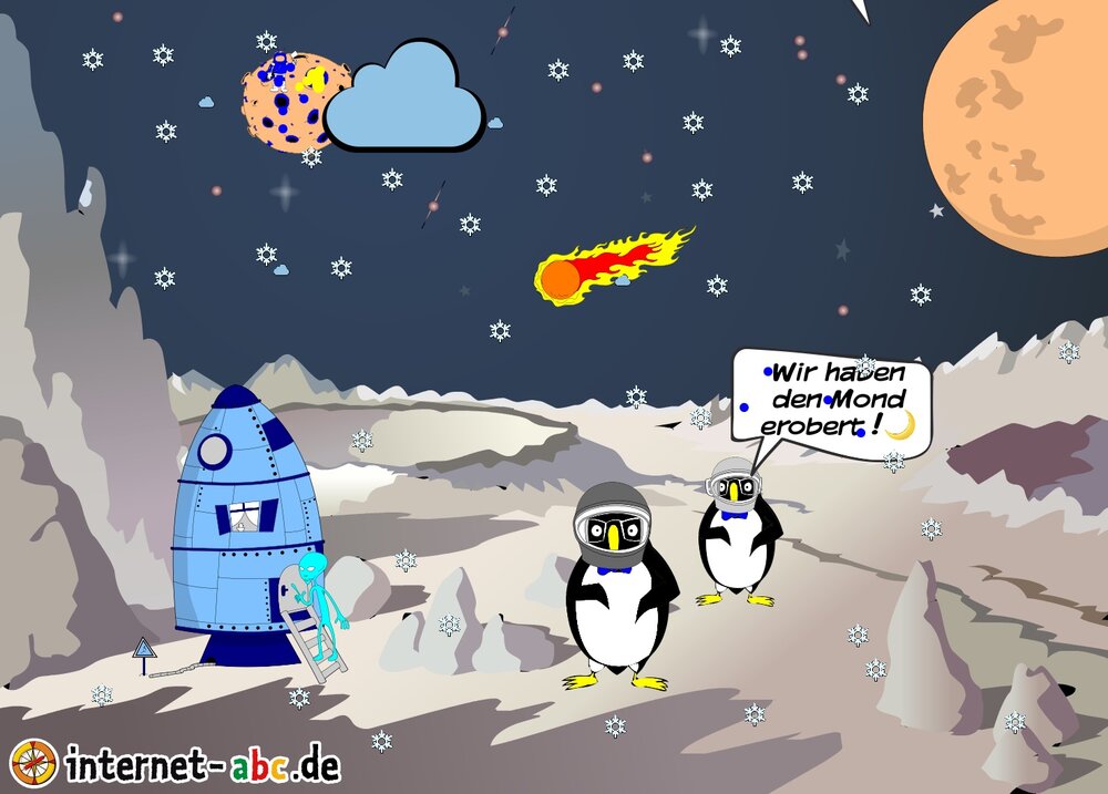 Zwei Pinguine erobern den Mond