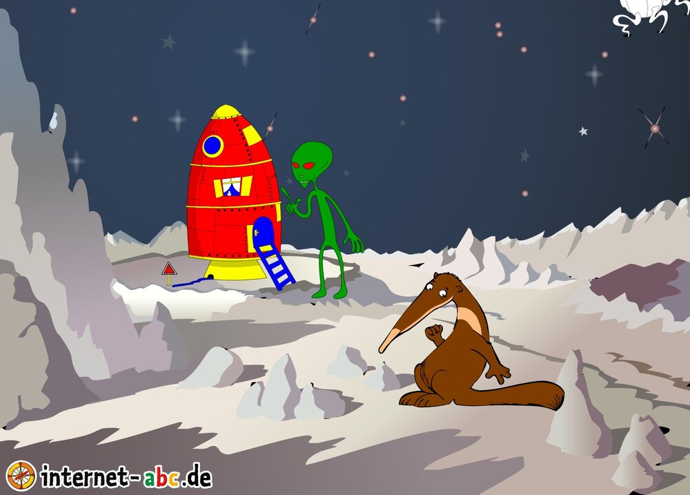 Mit der Rakete fliegen die 4 Internet-ABC-Tiere in den Weltraum. Was sie dort sehen und erleben, könnt ihr in diesem Baukasten malen und erzählen.