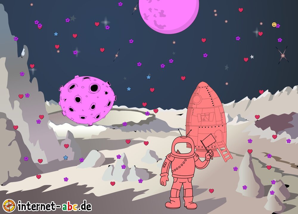 Mit der Rakete fliegen die 4 Internet-ABC-Tiere in den Weltraum. Was sie dort sehen und erleben, könnt ihr in diesem Baukasten malen und erzählen.