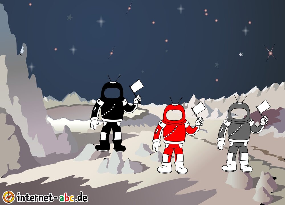 Mit der Rakete fliegen die 4 Internet-ABC-Tiere in den Weltraum. Was sie dort sehen und erleben, könnt ihr in diesem Baukasten malen und erzählen.