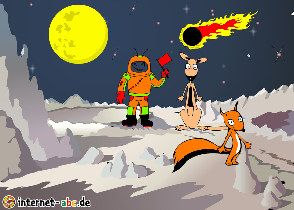 Mit der Rakete fliegen die 4 Internet-ABC-Tiere in den Weltraum. Was sie dort sehen und erleben, könnt ihr in diesem Baukasten malen und erzählen.
