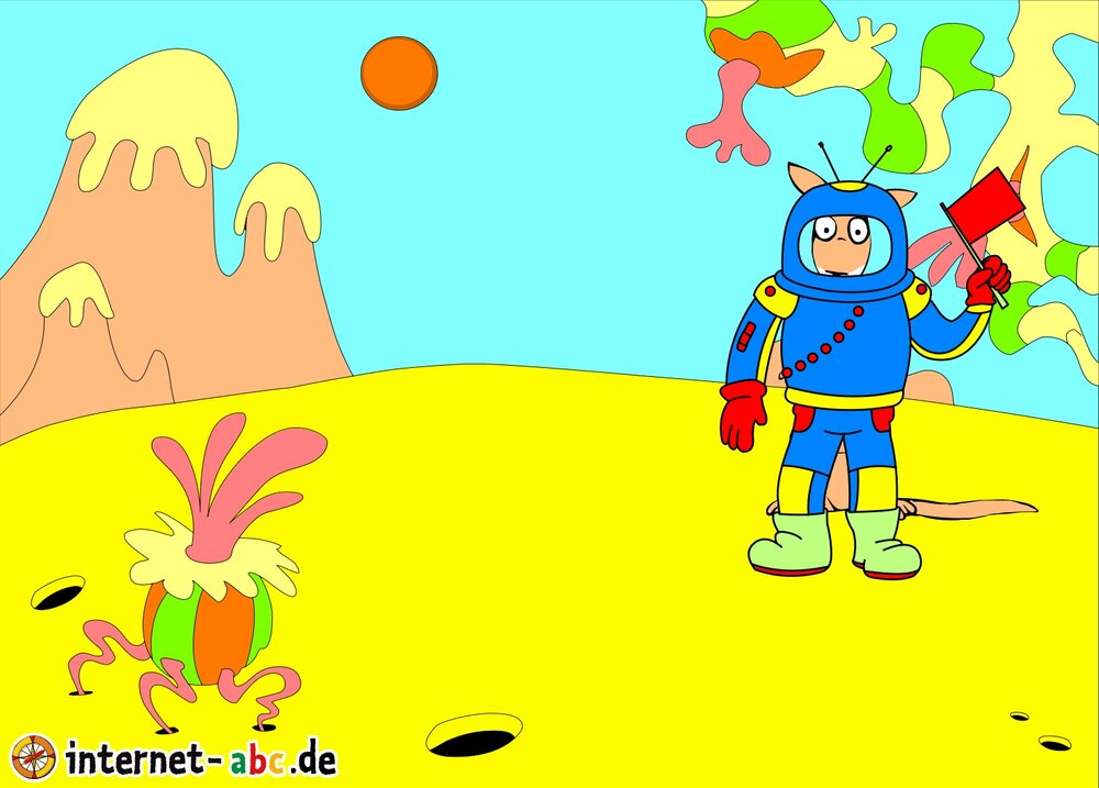 Mit der Rakete fliegen die 4 Internet-ABC-Tiere in den Weltraum. Was sie dort sehen und erleben, könnt ihr in diesem Baukasten malen und erzählen.