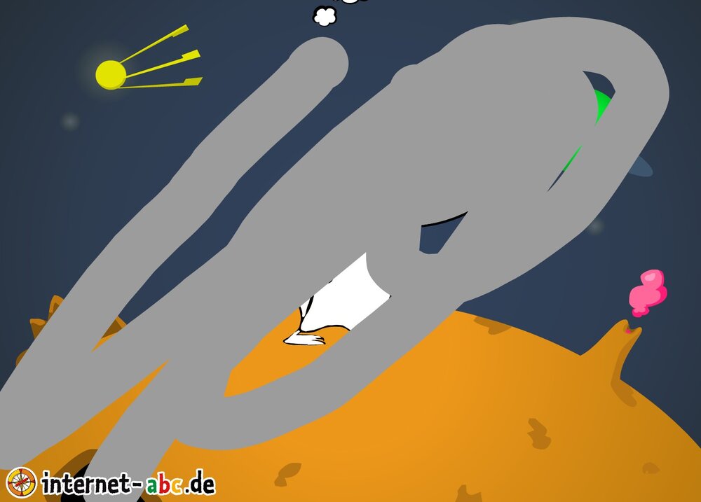 Mit der Rakete fliegen die 4 Internet-ABC-Tiere in den Weltraum. Was sie dort sehen und erleben, könnt ihr in diesem Baukasten malen und erzählen.