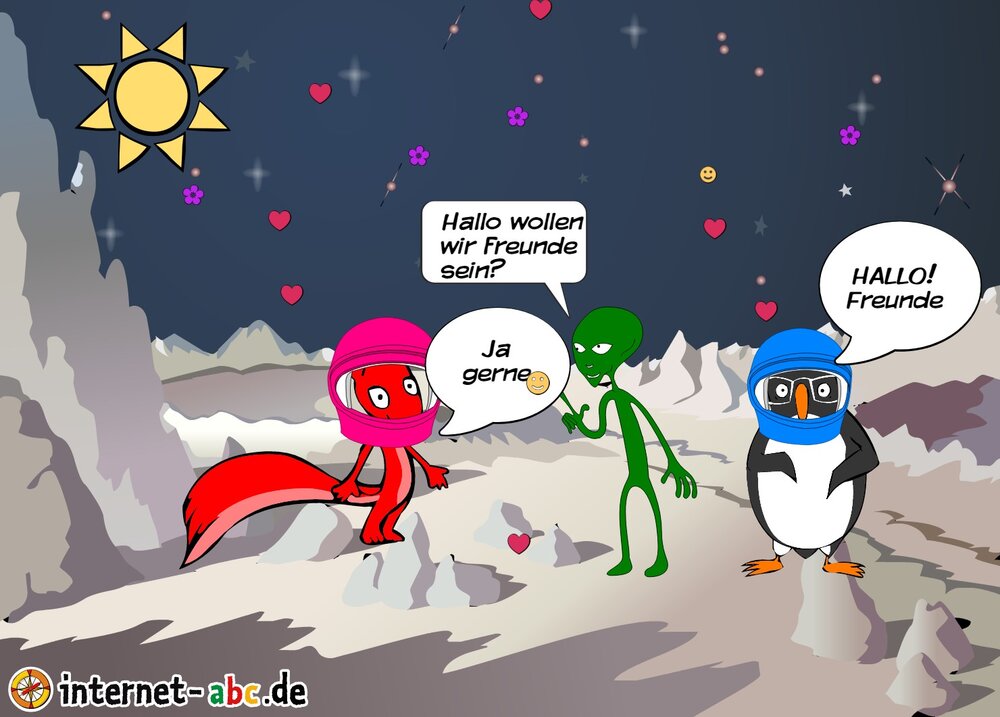 Mit der Rakete fliegen die 4 Internet-ABC-Tiere in den Weltraum. Was sie dort sehen und erleben, könnt ihr in diesem Baukasten malen und erzählen.
