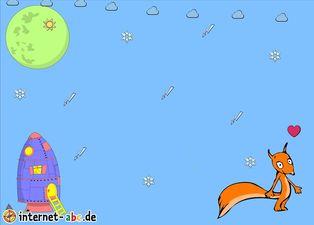 Mit der Rakete fliegen die 4 Internet-ABC-Tiere in den Weltraum. Was sie dort sehen und erleben, könnt ihr in diesem Baukasten malen und erzählen.