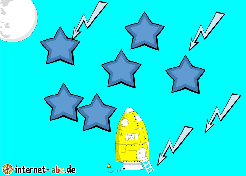 Mit der Rakete fliegen die 4 Internet-ABC-Tiere in den Weltraum. Was sie dort sehen und erleben, könnt ihr in diesem Baukasten malen und erzählen.