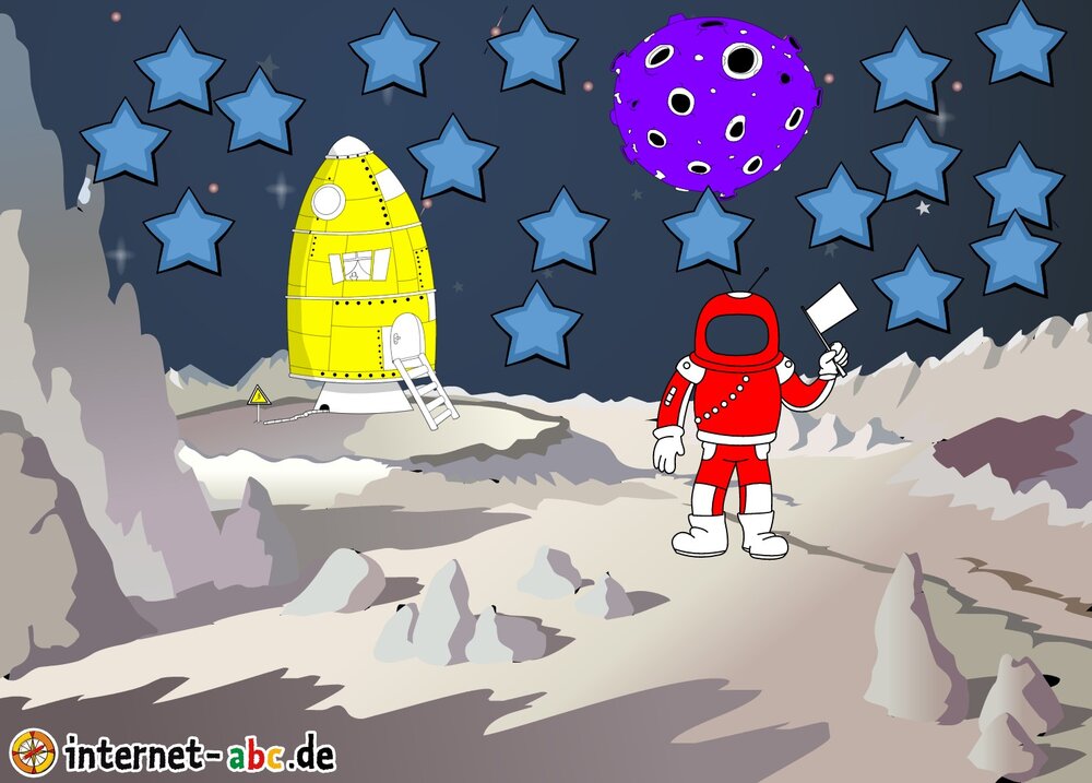 Mit der Rakete fliegen die 4 Internet-ABC-Tiere in den Weltraum. Was sie dort sehen und erleben, könnt ihr in diesem Baukasten malen und erzählen.