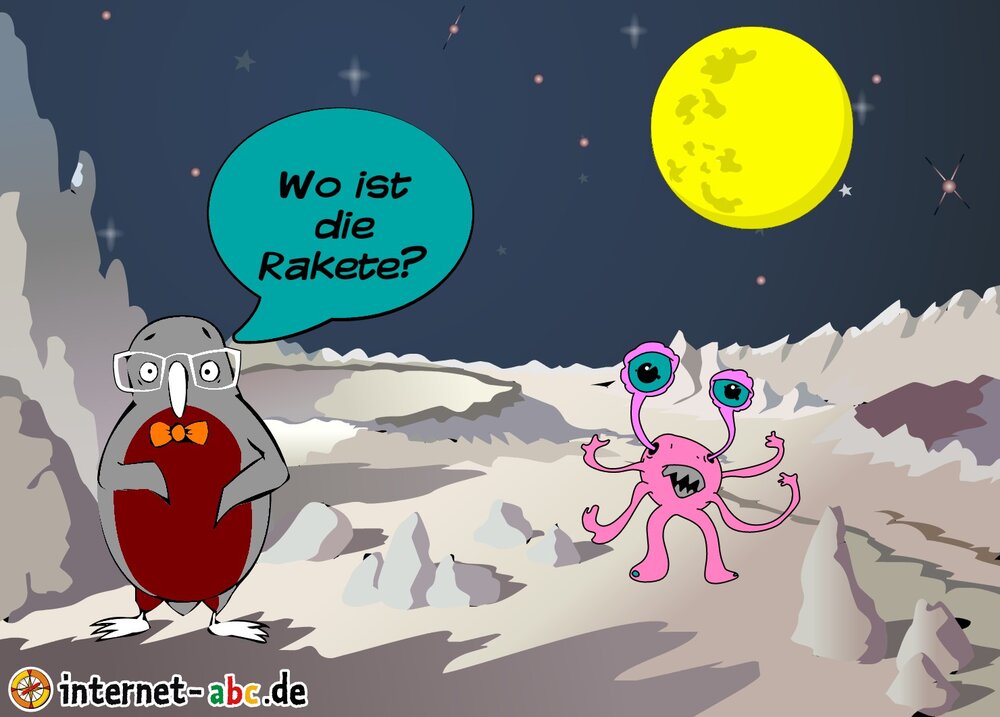 Mit der Rakete fliegen die 4 Internet-ABC-Tiere in den Weltraum. Was sie dort sehen und erleben, könnt ihr in diesem Baukasten malen und erzählen.