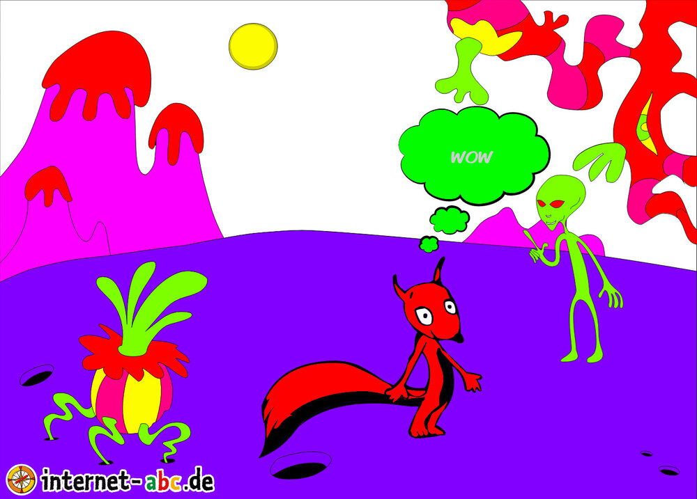 Mit der Rakete fliegen die 4 Internet-ABC-Tiere in den Weltraum. Was sie dort sehen und erleben, könnt ihr in diesem Baukasten malen und erzählen.
