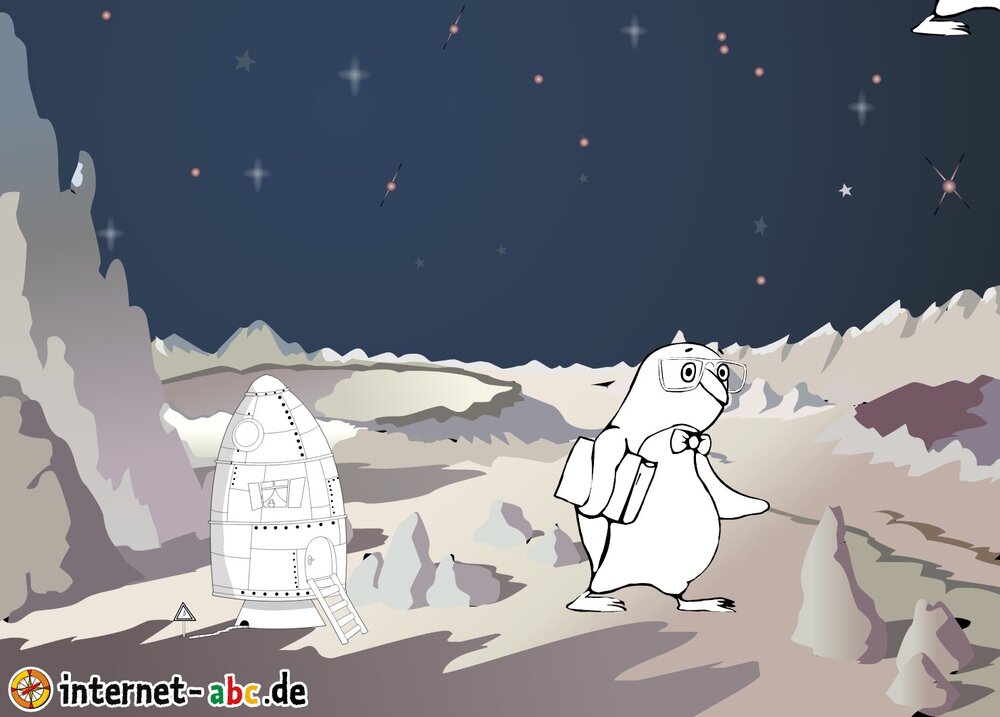 Mit der Rakete fliegen die 4 Internet-ABC-Tiere in den Weltraum. Was sie dort sehen und erleben, könnt ihr in diesem Baukasten malen und erzählen.