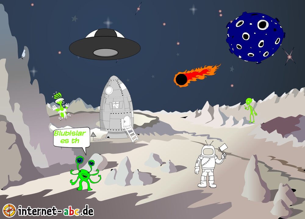 Mit der Rakete fliegen die 4 Internet-ABC-Tiere in den Weltraum. Was sie dort sehen und erleben, könnt ihr in diesem Baukasten malen und erzählen.