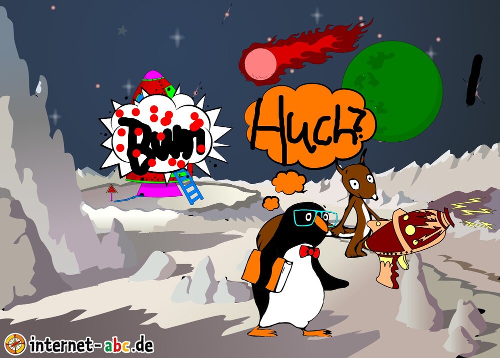 Mit der Rakete fliegen die 4 Internet-ABC-Tiere in den Weltraum. Was sie dort sehen und erleben, könnt ihr in diesem Baukasten malen und erzählen.