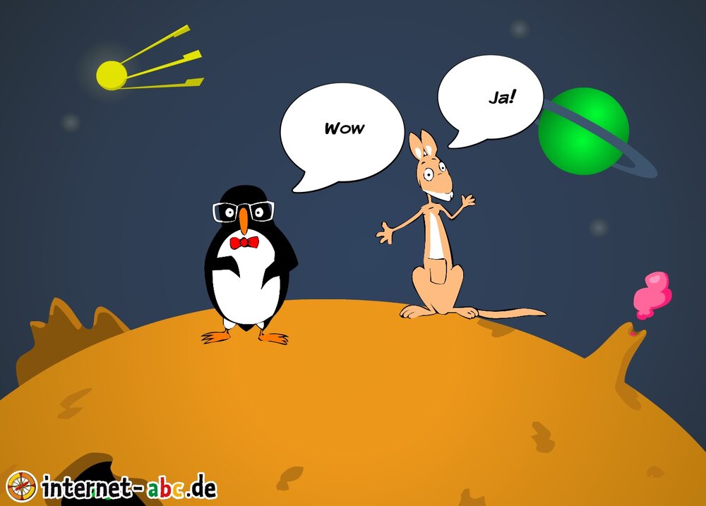 Mit der Rakete fliegen die 4 Internet-ABC-Tiere in den Weltraum. Was sie dort sehen und erleben, könnt ihr in diesem Baukasten malen und erzählen.