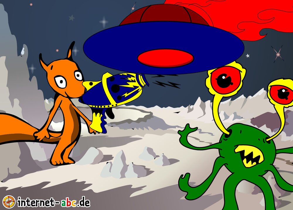 Mit der Rakete fliegen die 4 Internet-ABC-Tiere in den Weltraum. Was sie dort sehen und erleben, könnt ihr in diesem Baukasten malen und erzählen.