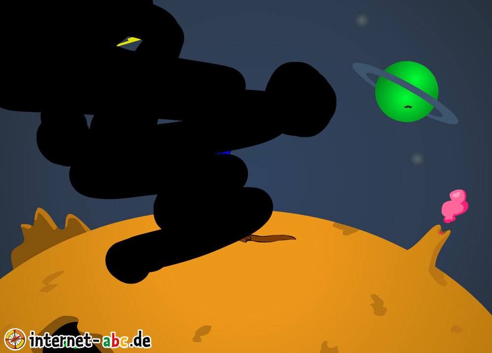 Mit der Rakete fliegen die 4 Internet-ABC-Tiere in den Weltraum. Was sie dort sehen und erleben, könnt ihr in diesem Baukasten malen und erzählen.