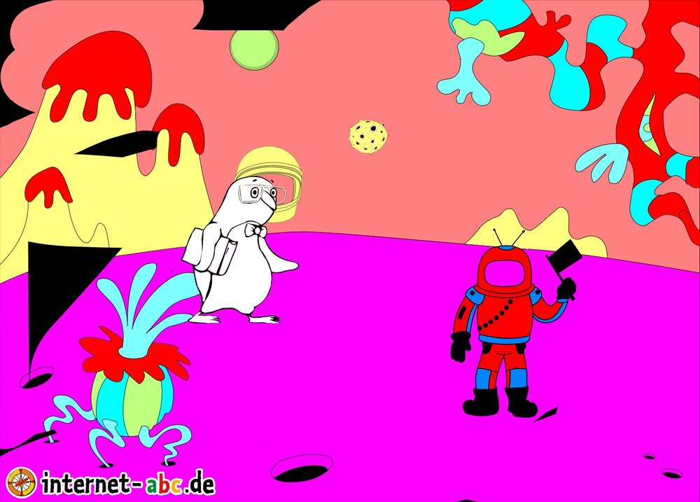 Mit der Rakete fliegen die 4 Internet-ABC-Tiere in den Weltraum. Was sie dort sehen und erleben, könnt ihr in diesem Baukasten malen und erzählen.