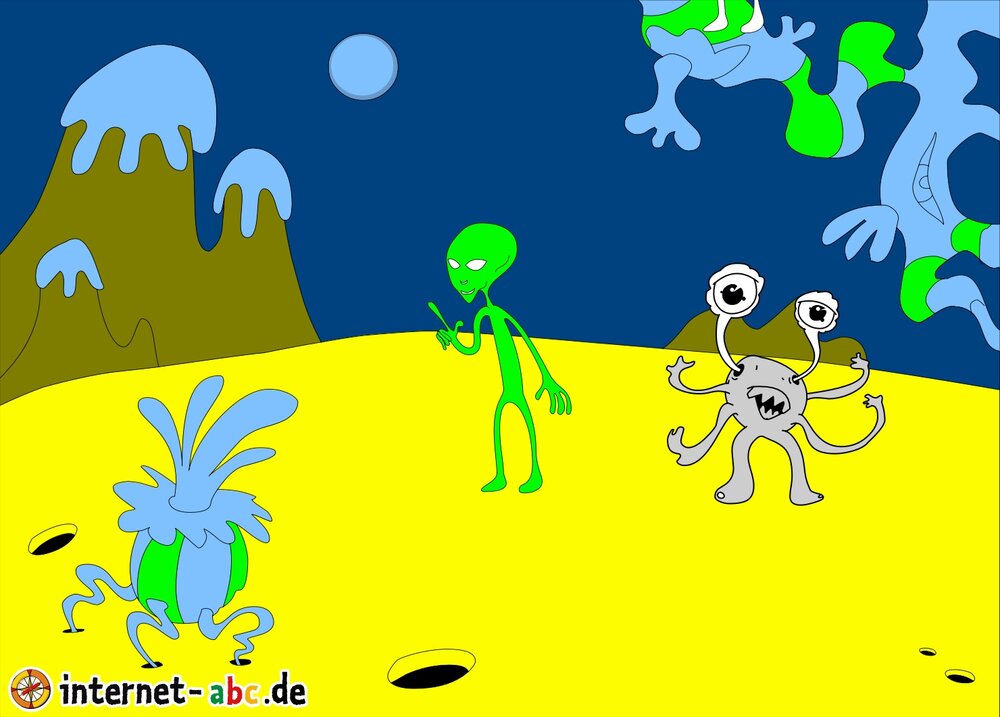 Mit der Rakete fliegen die 4 Internet-ABC-Tiere in den Weltraum. Was sie dort sehen und erleben, könnt ihr in diesem Baukasten malen und erzählen.