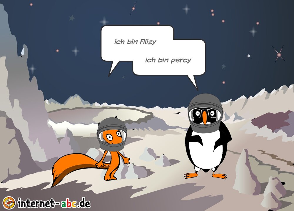 Mit der Rakete fliegen die 4 Internet-ABC-Tiere in den Weltraum. Was sie dort sehen und erleben, könnt ihr in diesem Baukasten malen und erzählen.