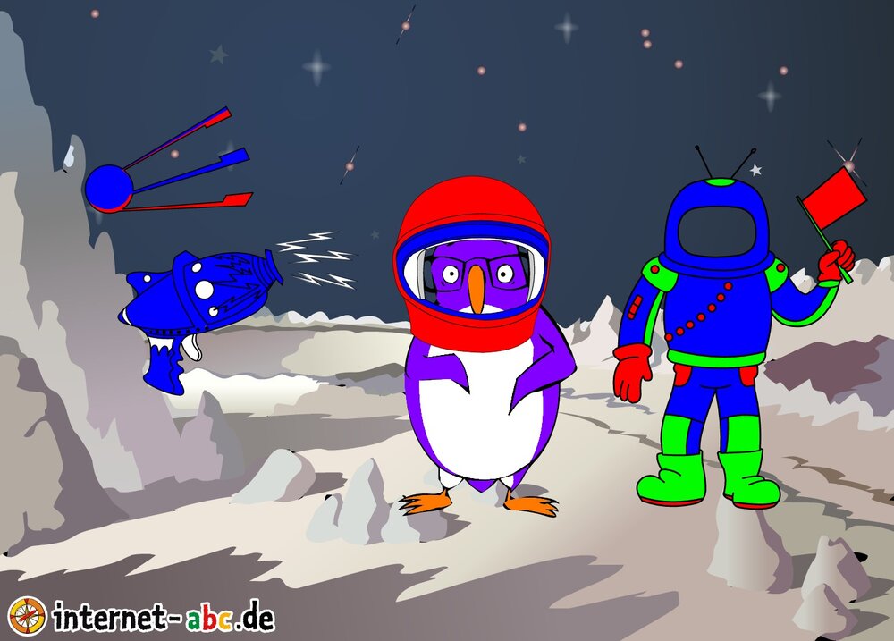 Mit der Rakete fliegen die 4 Internet-ABC-Tiere in den Weltraum. Was sie dort sehen und erleben, könnt ihr in diesem Baukasten malen und erzählen.