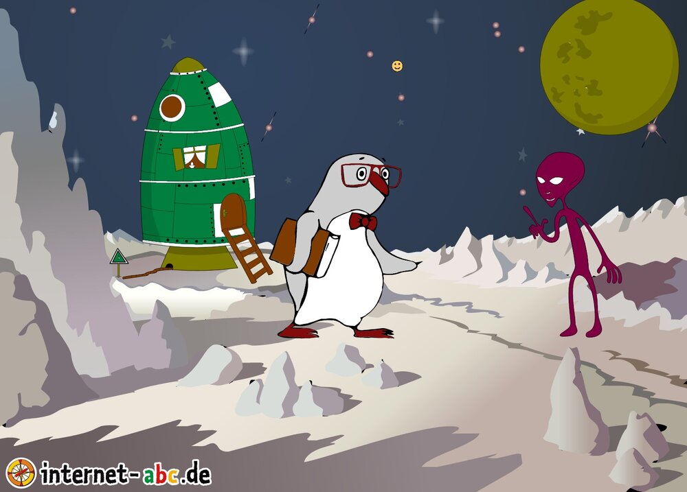 Mit der Rakete fliegen die 4 Internet-ABC-Tiere in den Weltraum. Was sie dort sehen und erleben, könnt ihr in diesem Baukasten malen und erzählen.