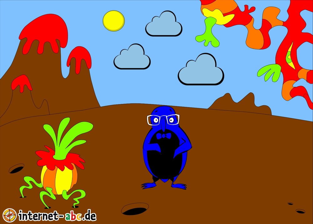 Mit der Rakete fliegen die 4 Internet-ABC-Tiere in den Weltraum. Was sie dort sehen und erleben, könnt ihr in diesem Baukasten malen und erzählen.