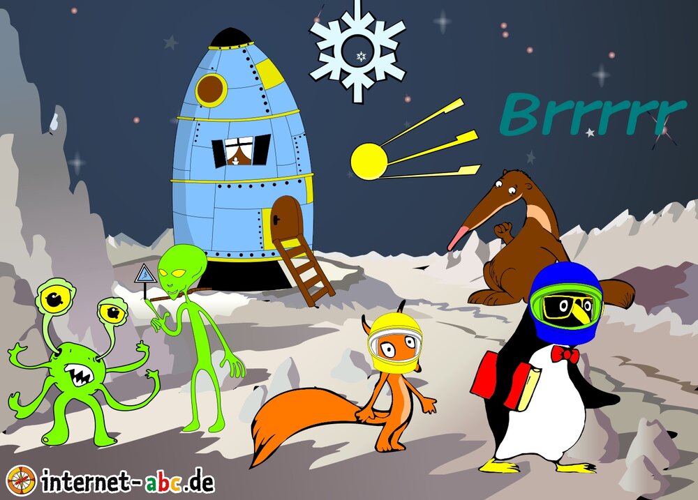 Mit der Rakete fliegen die 4 Internet-ABC-Tiere in den Weltraum. Was sie dort sehen und erleben, könnt ihr in diesem Baukasten malen und erzählen.